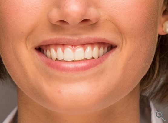 Bei einem perfekten Lächeln wird nicht zu viel Zahnfleisch entblößt. Optimal erreicht die Kontur der Oberlippe nur knapp den Zahnfleischrand.